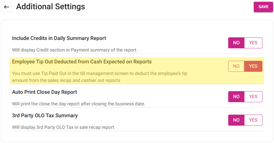 Navigation: Log into the BO for your Store, then select Settings > Payments > Till Settings