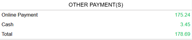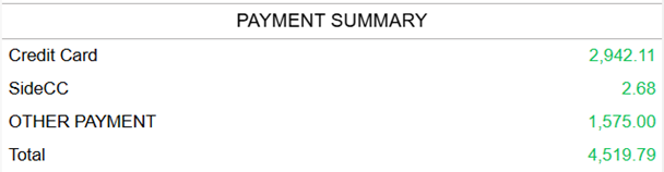 The payment summary includes summary for Credit Card, SideCC and Other Payments along with its Total.