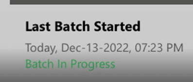 - Batch In Progress - If the batch is processing, this status will appear at the bottom of the screen in the following format: