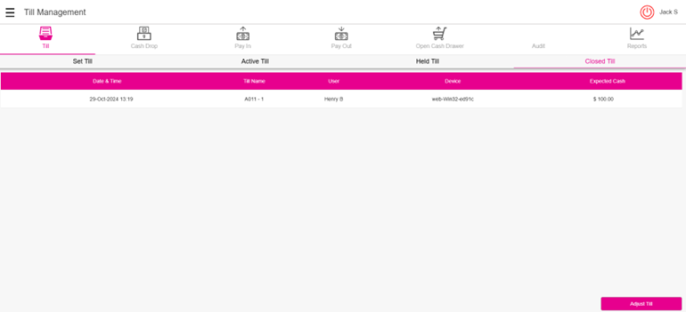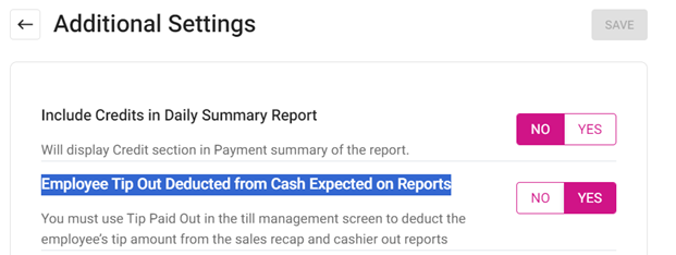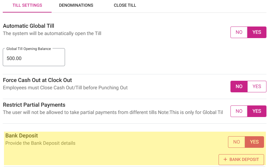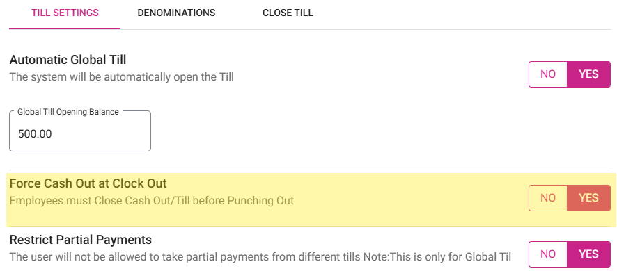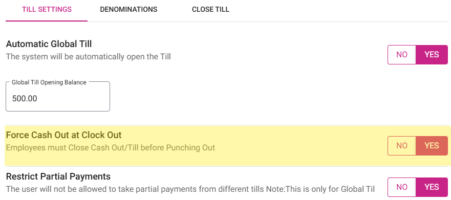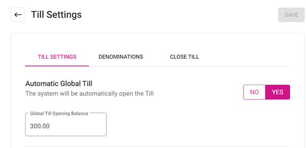 Navigation: Log into the BO for your Store, then select Settings > Payments > Till Settings