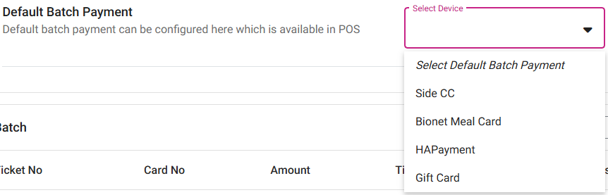 Default Batch Payment - Select the default batch payment from the drop-down list which is already configured.