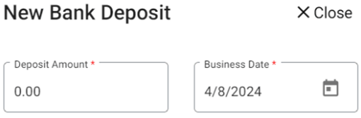 - On the New Bank Deposit pane that appears: enter the Deposit Amount and Business Date, then click Save.