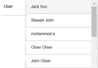 Displays the list of usernames, allowing you to select a username from the dropdown to apply the filter.