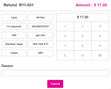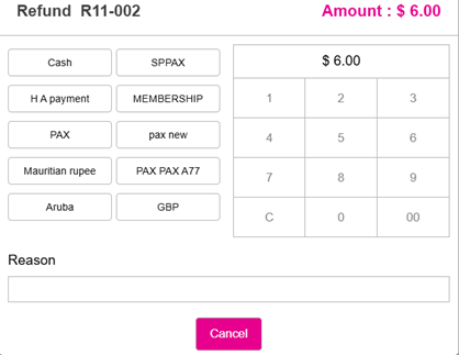 Refund Reasons in the POS system are pre-configured in the Back Office, allowing users to select from these predefined options when issuing a Refund. You can choose any one of the pre-defined Refund Reasons - or create a new Reason.