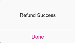 - Select Yes. The pop-up will be closed and the Refund Success pop-up appears - with Done to close the pop-up.