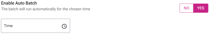 Enable Auto Batch - If enabled, select the Time and the batch will run automatically for that selected Time. If disabled, the batch must be submitted manually.