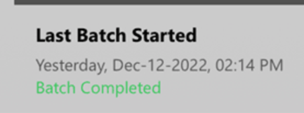 - Batch Completed - After the batch is processed, this status will appear at the bottom of the screen in the following format: