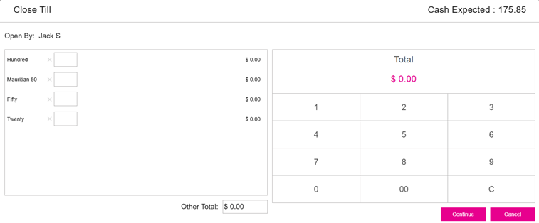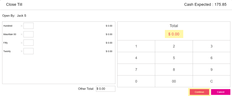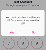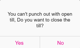 appears. - If there are active tills: the warning message 'You have <count> active tills' with an exclamation mark
