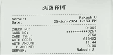 - If the toggle is enabled in BO and the batch is submitted in POS, the Batch report will automatically be printed for submitted Checks.