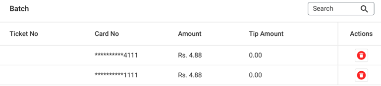 - The payments made by customers using the payment methods Credit Card, SPPax, Dejavoo, Optomany, MPPG eDynamo, Ingenico will be displayed in the Batch/Tip Adjustment screen.