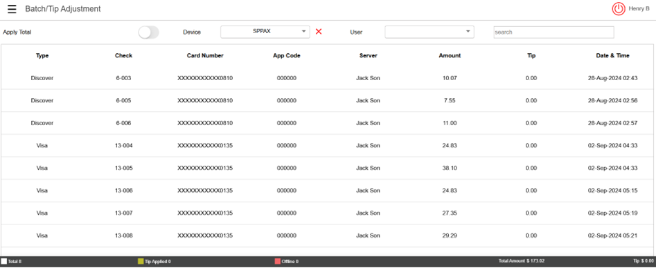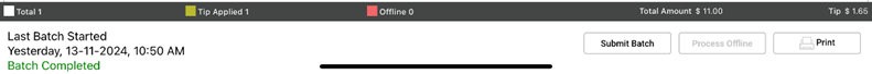 - Tip for the transaction can be changed or applied in the batch screen before batching.
