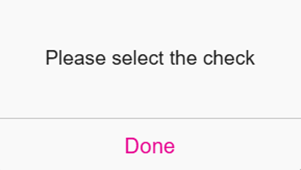 - If a check is not selected but Refund is clicked, the message 'Please select the check' appears - with a Done option to close the message.