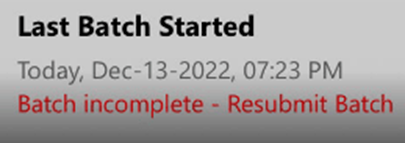 - Batch Incomplete - After the batch is processed, this status will appear at the bottom of the screen in the following format: