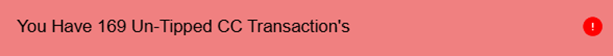 appears. - If there are un-tipped cc transactions: the warning message 'You have <count> Un-Tipped CC Transaction(s)' with an exclamation mark