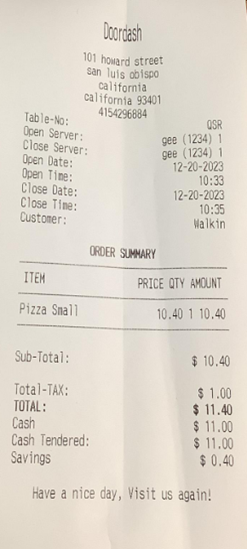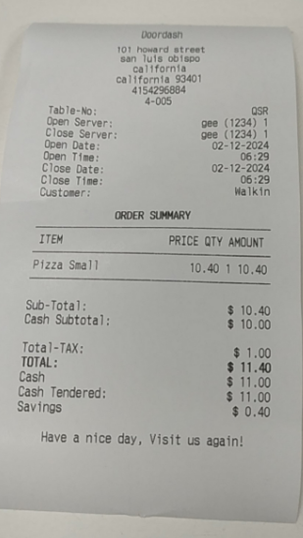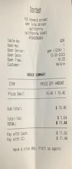 Formula: Cash Subtotal = Sub Total ($10.40) – Dual Price ($0.40) = $10