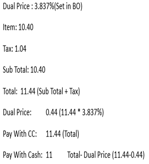 - If the Customer pays a partial amount using other payments and the remaining Amount using Cash, the Dual Price will be applied only for the amount paid by Cash.