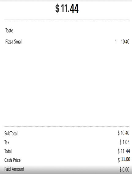 When payment is made using Cash or Fast Cash, the Dual Price value will be displayed on the Receipt.