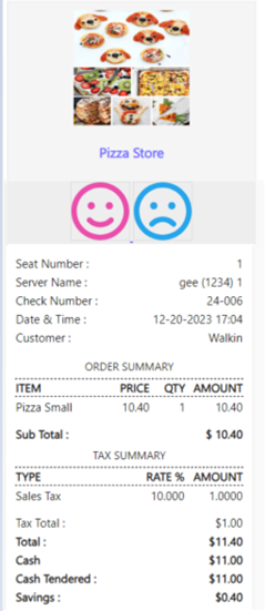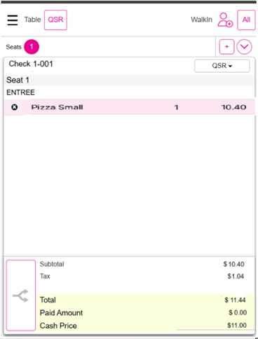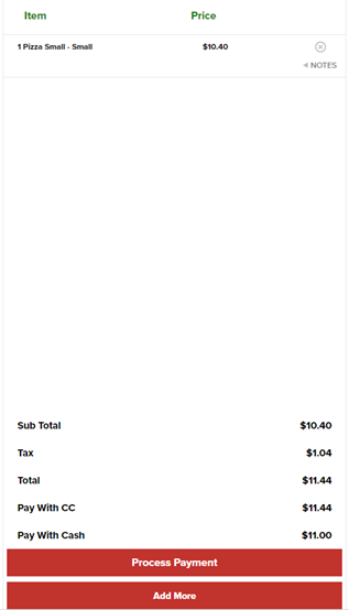 Note: The Cash subtotal line item will not appear on Bill Print or for Credit Card payments.