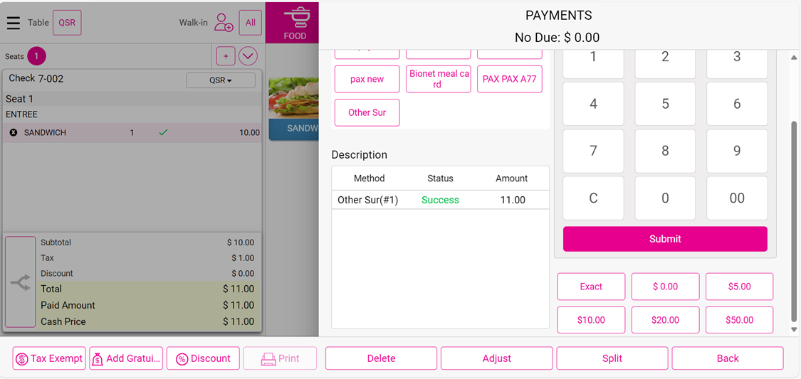 Enabled online pickup tip, Enabled declared cash tip, Disabled Gratuity, Enabled Driver compensation | CC tip - Tip charge - Tip out Contribution + Driver compensation+ Online Pick-up tip+ Declared cash tip | Tip shared + Tip out + Gratuity |