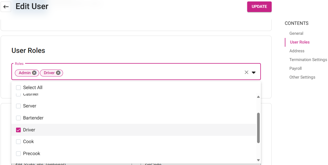 You can select an Order from the left side of screen. You can see the Order's details like Check Number, Total Amount and Status (paid or unpaid), Address, Driver status (assigned, delivered) and receipt icon.