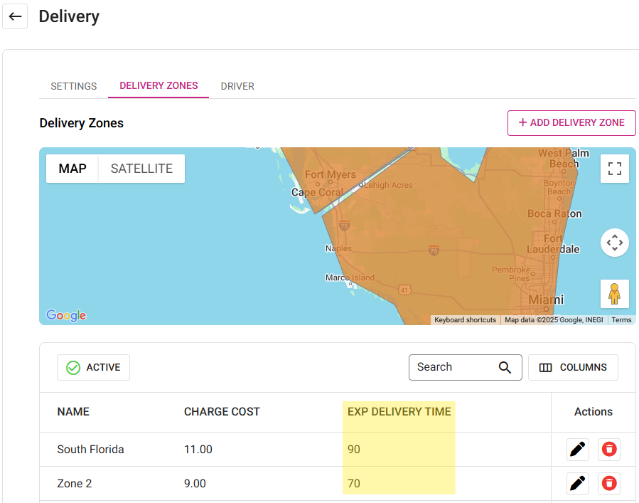 - Zone – The number representing the Zone (per Store settings) that contains the Delivery Address.