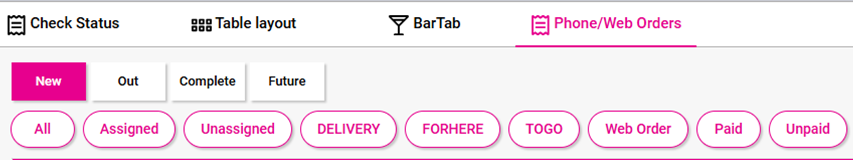 - Web Order - When you select the filter option Web, the online order checks will appear.