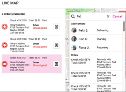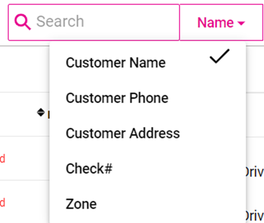 Search Orders - The Search bar is for searching for an Order by its various details. 3-character minimum. It can find all Orders either delivering or delivered by that Driver.