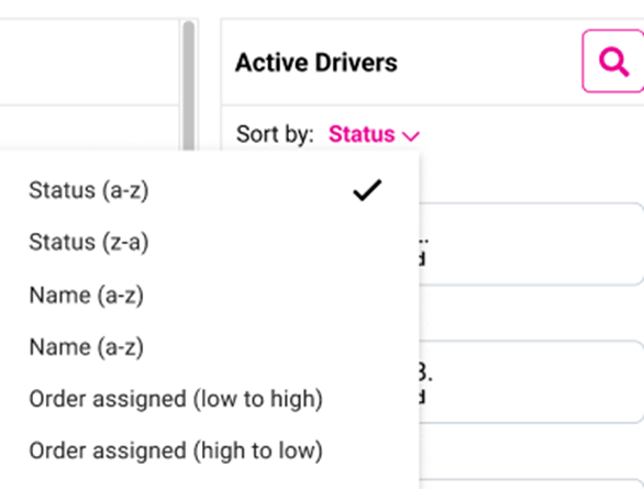 - Status (a-z, z-a) (default) - Drivers will be sorted by Status alphabetically.