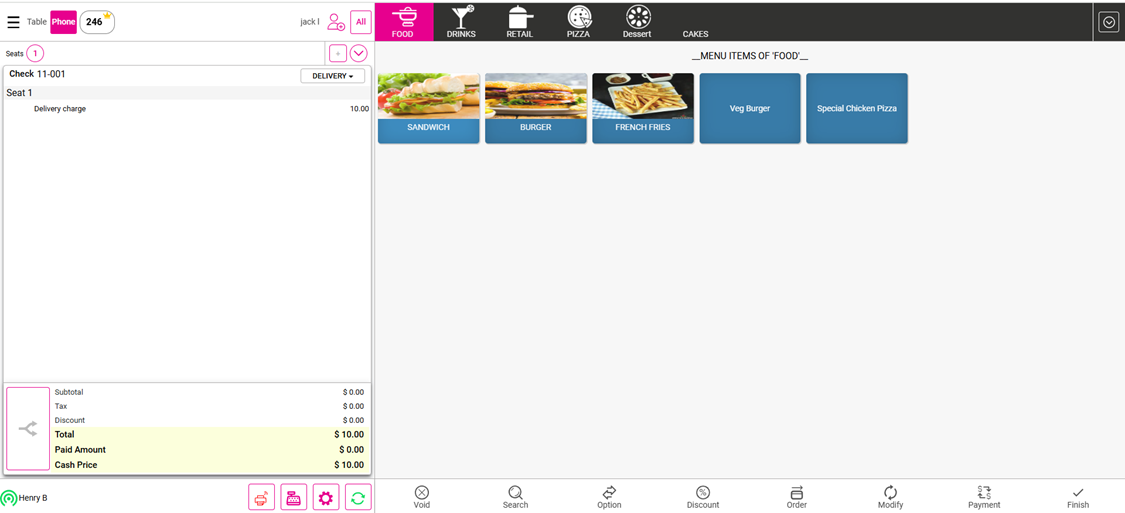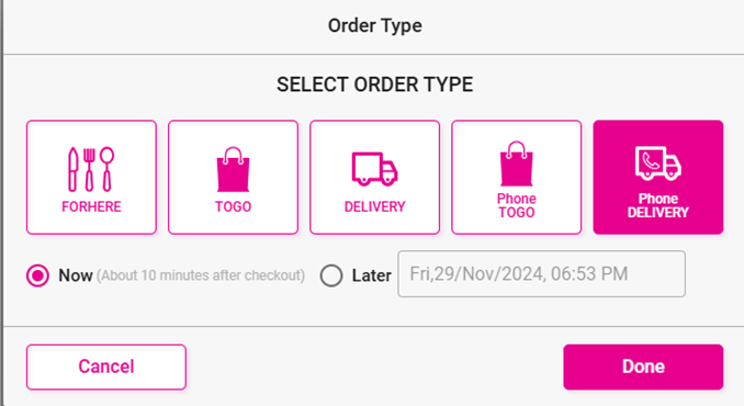 - After logging in: for the Order Type select Phone Delivery then click Done to enter the Customer page.