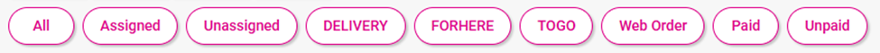 - Unassigned – Shows all For Here and To Go orders, and Delivery orders that do not have a driver assigned.
