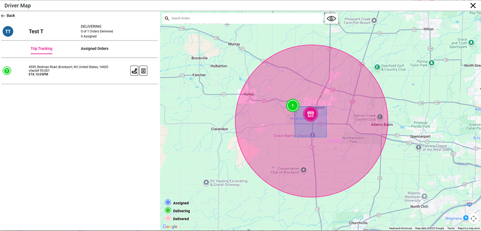 The Driver map is similar to the Live Map but displays only the Delivery Orders that are assigned to the Driver.