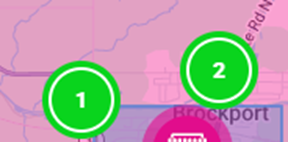Pink Icons (Delivered) – Orders assigned to the driver that have been arrived and closed. These orders will disappear from the map once a new trip has been departed for the driver.