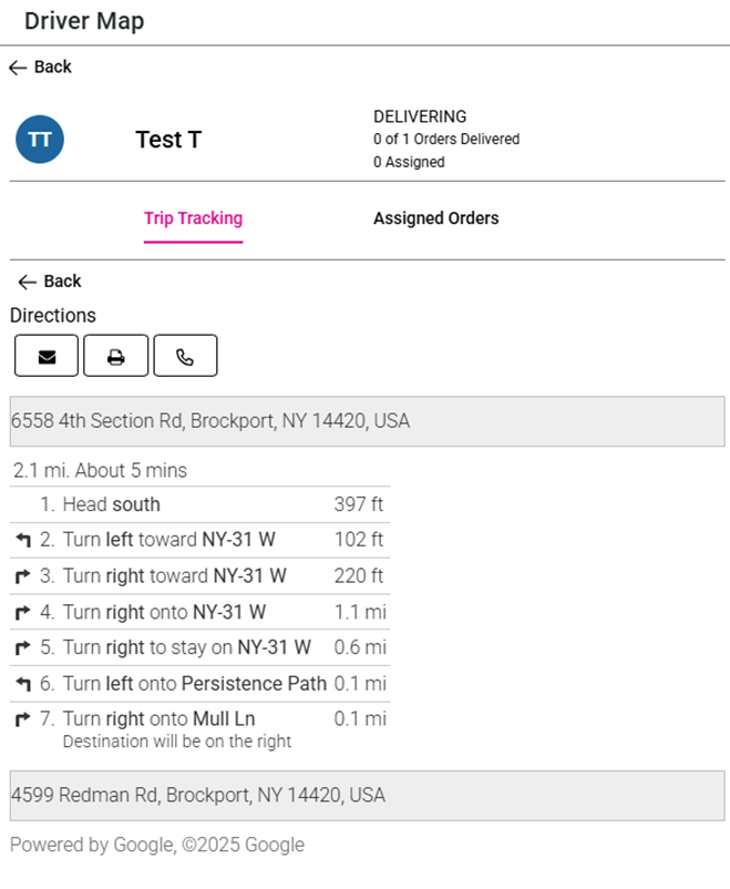Map Icon – Tap this icon to see the Google Maps directions from the restaurant to the delivery address.