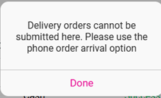 Delivery Address: Specifies the customer’s location where the Order needs to be delivered. Only the partial address appears on the screen. Tap on the Address to see a pop-up of the full Address.