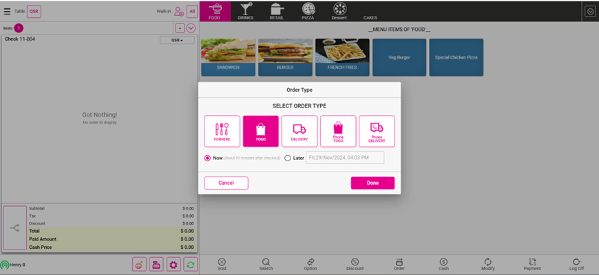 POS Navigation: Log in to POS, select Phone/Web Orders > Future Orders Selecting a Date and Time You will have the provision to adjust the Future Order's Date and Time. Selecting a Past Time and Date won't be allowed to be set for Future Orders. Any ...