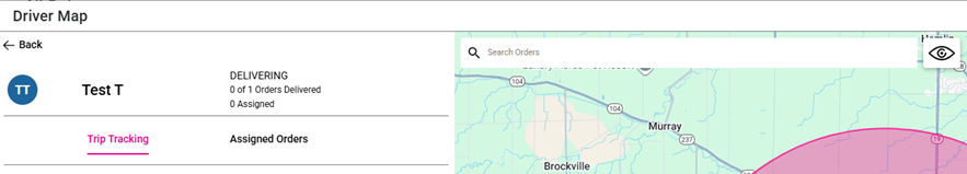 The Trip Tracking and Assigned Orders tabs appear, along with the map of the selected Driver. Note: It will only show the Restaurant and Location of current Orders. If you're using the Driver app, the current location of the Driver will be available.