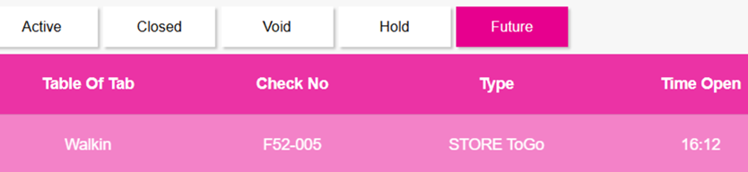 Example: If an Order for 4:20pm is placed at 4:12pm then this Order will be in the Future Order tab.
