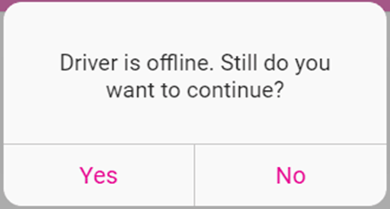 If the Driver is offline, the message 'Driver is offline. Still do you want to continue?' pop-up appears.