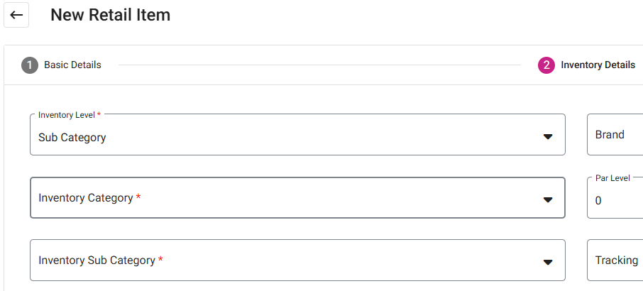 Select the Inventory Unit from the dropdown which is already created in the In-House Unit in Inventory section. This is the mandatory field. When inventory unit is chosen then you should be able to provide the Par Level for that unit and water mark text should be available as threshold limit. By default, the inventory unit will be mentioned next to par level.