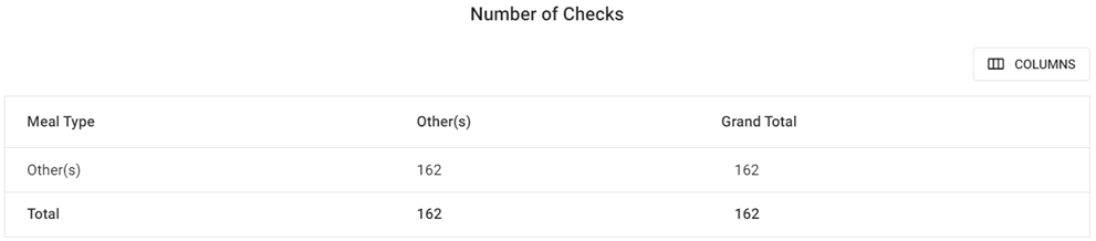 Displays the number of Checks created in the Revenue Center in the respective Day Part.