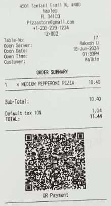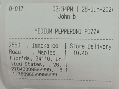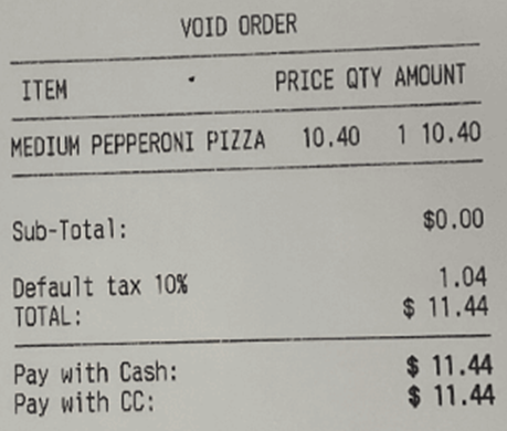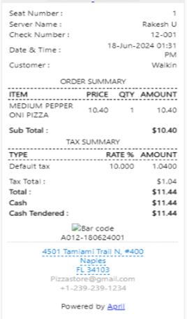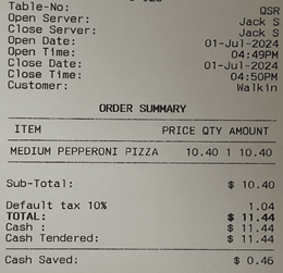 Sample Kitchen Print Receipt
