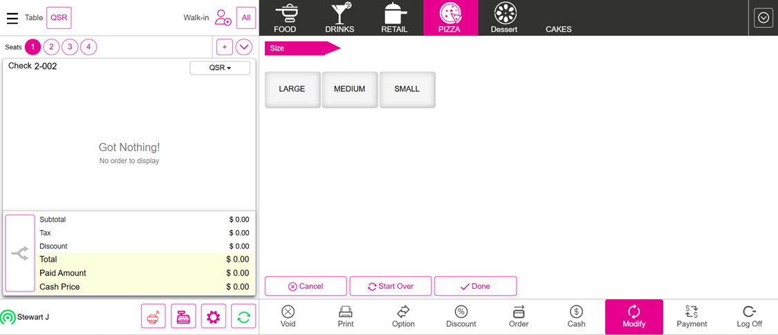 - POS Order screen