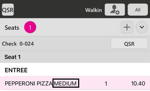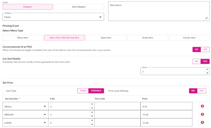 Log in to POS, select Menu Item, and - if the Serving Size In Front of Menu in KOT toggle is enabled in BO - the Serving Size will appear in front of the Menu Item.