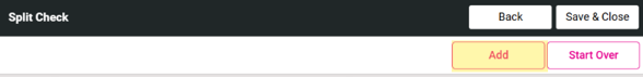 Split by Check: Split by check can be used if each guest wants to pay individually for their items placed on a single check. Split by check includes the following options, ADD- When the user clicks on the ‘Add’ button, a new check will be added ...
