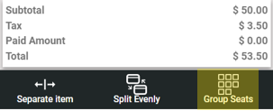 Select Group Seats to group the Checks of the selected Seats onto a single Check.