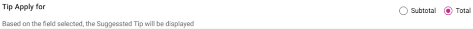 Total – If selected, the Tip is calculated based on the Total amount (after Tax and other charges added).
