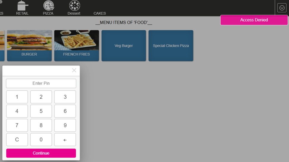 If unsuccessful, the Enter PIN pop-up remains with the Access Denied banner notification appearing at the upper-right of the screen.