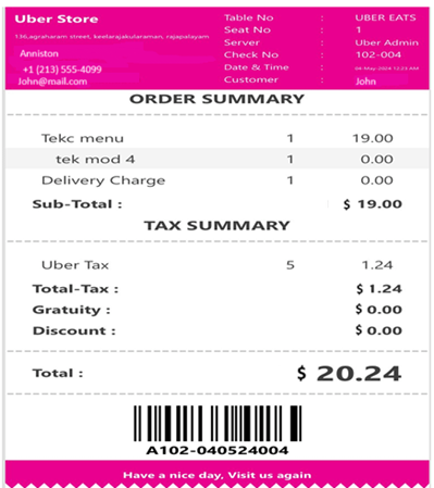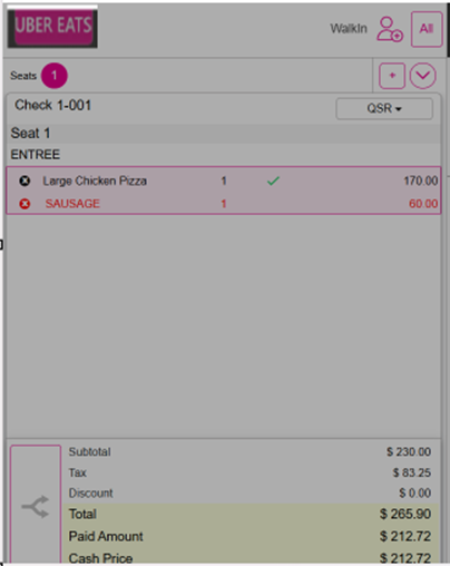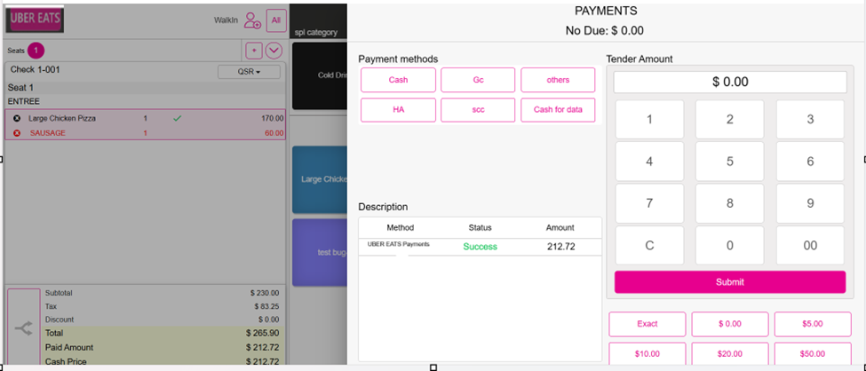 Check Total – The value entered from BO (including inclusive and exclusive taxes). It will not include the uber service charge & delivery fee.