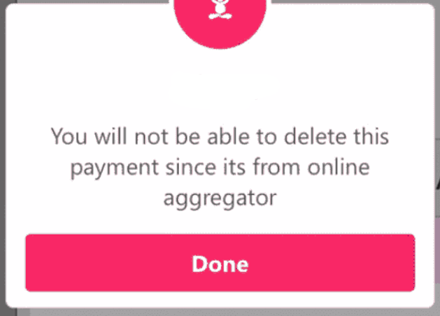 If payment delete is selected, the message ‘You will not be able to delete this payment…’ appears along with Done button. Upon selecting Done, you are returned to the Payment screen.