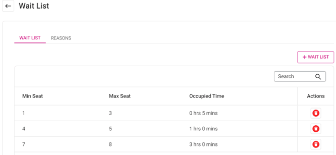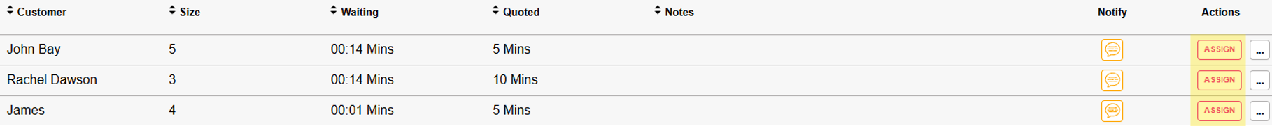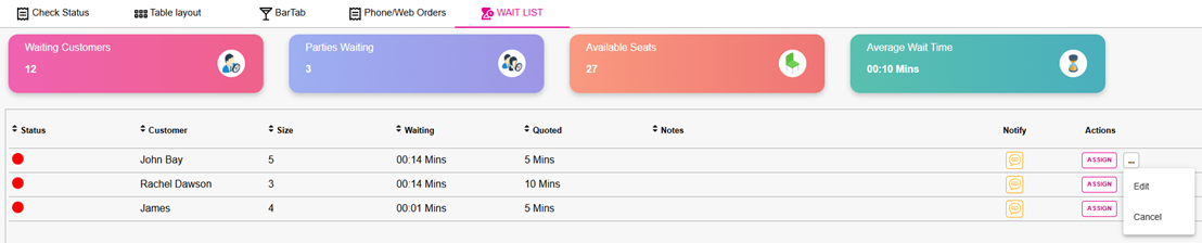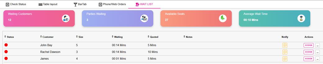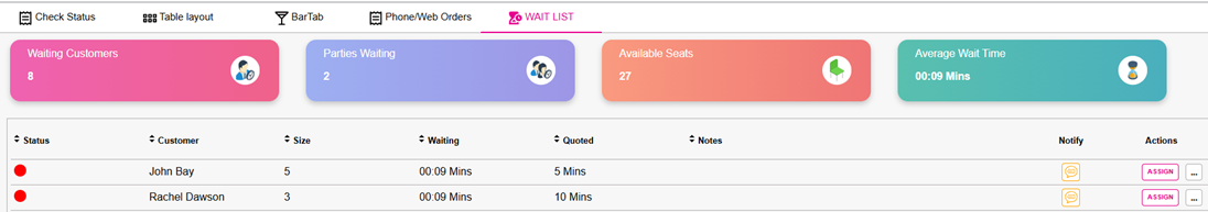 - When a Customer is assigned a table: the respective Customer will be removed from the Wait List screen.